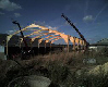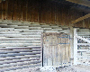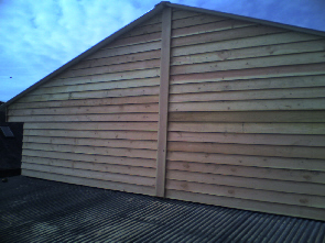 Bâtiments agricoles de stockage en bois de grande hauteur.