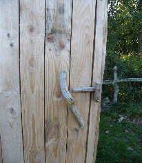 Les toilettes sèches sont en bois croutes de sapin et planche de douglas.